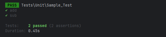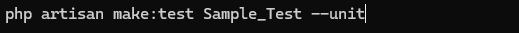 Laravelプロジェクトフォルダ内で以下のコマンドを打つことで tests/units 配下に単体テストファイル(Sample_Test)を作成できます。