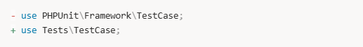 ※テストフォルダには、単体テストファイル用フォルダのtests/unit、結合テスト用のフォルダのtests/featureが存在します。unitフォルダ内に作成されるテストファイルは、厳密な単体テスト用のファイルとして作成されるため、デフォルトではLaravelが提供する外部依存機能機能(トランザクション、ファクトリー、シーダー、ファサード認証など)が使えません。しかし、実用的には単体テストにおいても、これらのLaravelの機能を含めた単体テストを行うことがあるので、上記のコードの変更を行いました。