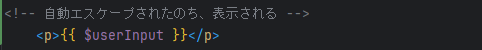 ※{{}}内の変数に対して自動でhtmlspecialchars(エスケープ処理のメソッド)を施してくれます