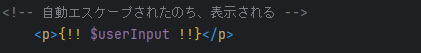 Laravelでは {{ $変数 }} という記述方法で、変数の中身を自動的にエスケープしてくれる機能があります。